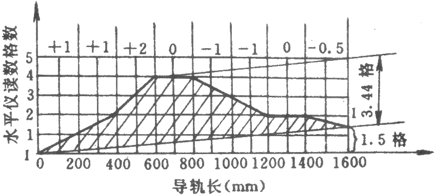 27、(单选题)若水平仪的精度为0.05/1500mm,每段的测量长度为200mm,则下图的直线度误差结果是()。