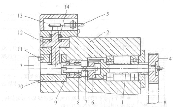 25、(主观题)试述下图换刀和刀具夹紧机构图的工作原理及自动换刀装置常见故障和排除方法。 换刀和刀具夹紧机构图 l―刀具主轴I 2―刀具主轴箱 3―刀夹体 4―同步带轮 5―接近开关 6―花键套 7―弹簧 8―花键传动轴 9―密封圈 10―刀柄套 ll―刀夹体定位销 12―活塞 13―夹紧定位块 14―蝶形弹簧